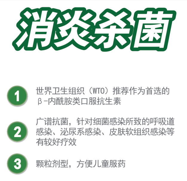 用于敏感菌(不产β-内酰胺酶菌株)所致的呼吸道感染、伤寒及尿路感染等。